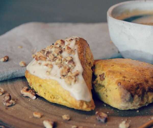 Cuando los bollos salen del horno, aplique el glaseado a uno a la vez con una cuchara (ya sea para difundir o lo llovizna), agregar las nueces tostadas machacadas a ellos individualmente como vas, mientras que el esmalte está todavía húmedo.