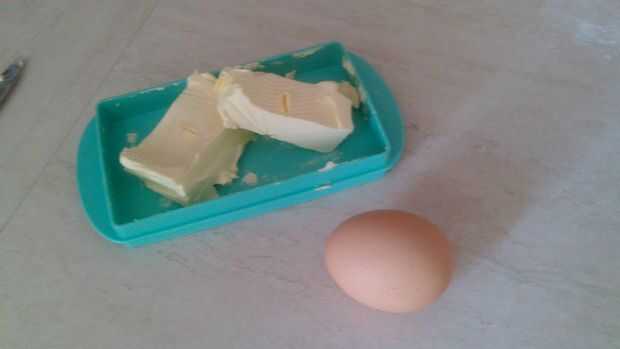 Antes de empezar, dejar la mantequilla y el huevo un par de minutos (20 minutos es perfecto) fuera de la nevera, calentar a temperatura ambiente.