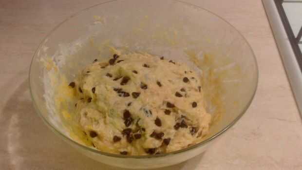 OK, nuestra masa está lista. Añadir unos 100 gr de chips de chocolate. Usar fichas preparadas, pero también puede usar una tableta de chocolate en virutas pequeñas, o usar una licuadora. No hagas demasiado pequeñas virutas!
