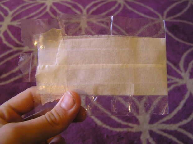 Tomar todo y pliegan muy cuidadosamente para que la cinta transparente adhesiva se pega a sí mismo.