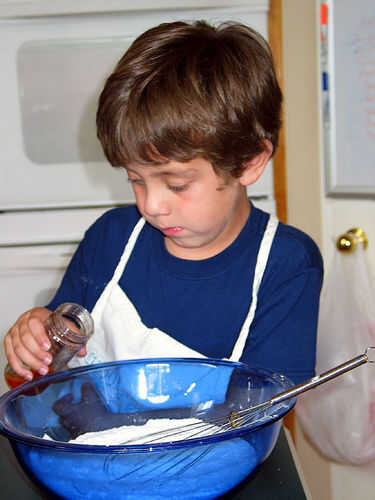 Se mezclan los ingredientes húmedos. Generalmente uso un pequeño recipiente y sacúdalo para arriba. No te preocupes separación demasiado, no vas a conseguir una emulsión completa. Entonces, mientras batir, agregue lentamente pequeñas cantidades de líquido a los ingredientes secos. Aquí vemos mi Igor fiel prepararse para servir.