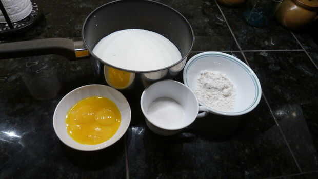 Me gusta mi crema pastelera muy espesa, si quieres más fino, utilizar menos harina.