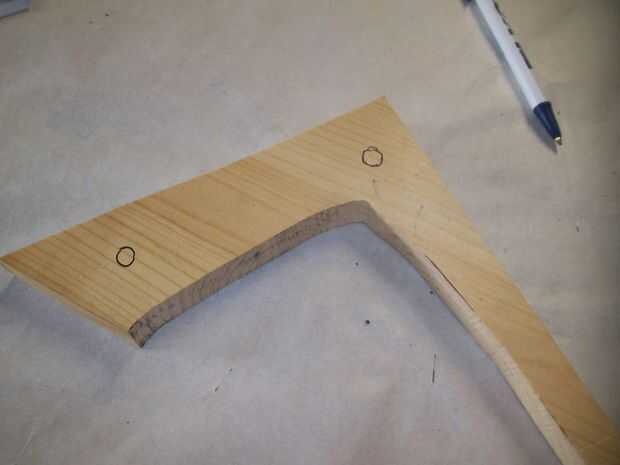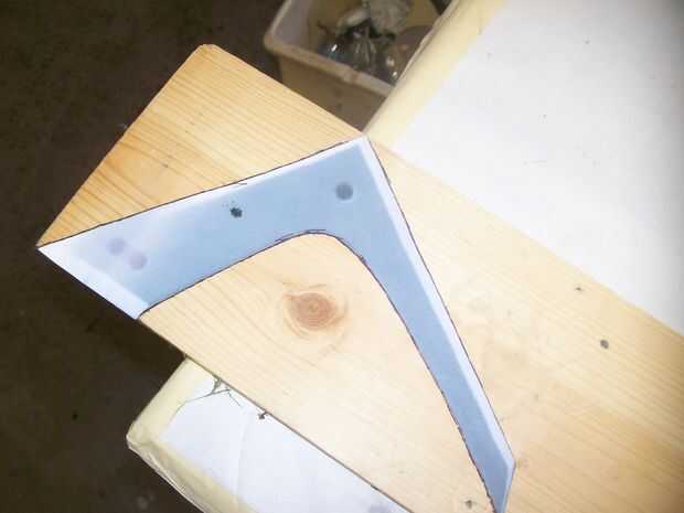 Foto de su bumerang de google para obtener la forma correcta. Después de perforar los agujeros dio todo un lijado ligero.