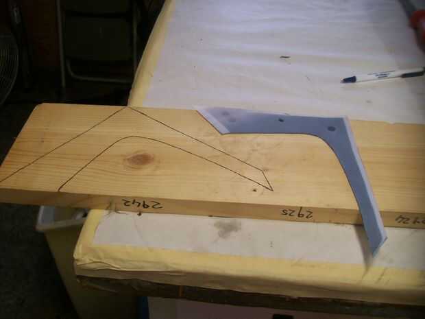 Cortar la forma básica y luego marque donde van los 2 agujeros. La madera que estaba usando es a 3/4 de pulgada gruesa común. Trazado un