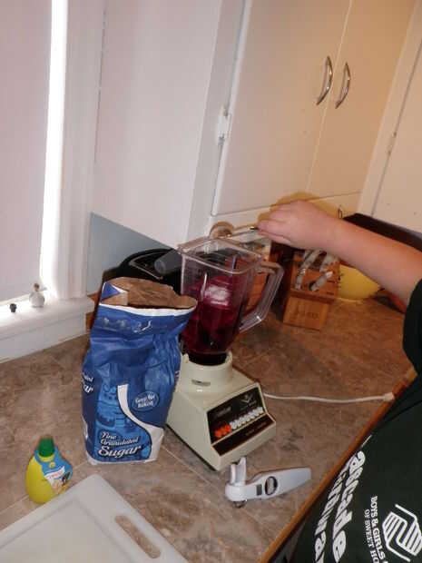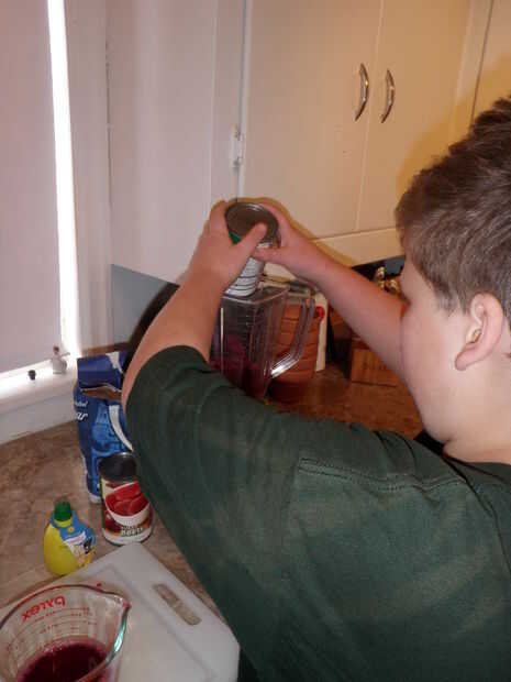 Colocar la remolacha escurrida en la batidora junto con zumo de limón y azúcar.