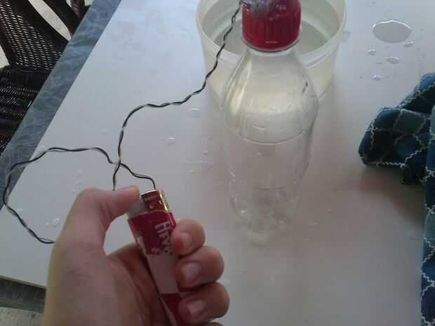 Intente cerrar la botella en el agua para el gas (hidrógeno) no saldrá...