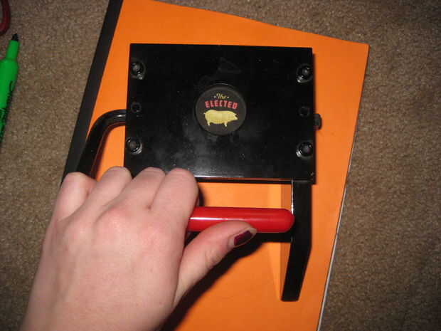 2. ahora usted tendrá que cortar la imagen de un círculo. Deslice la tira de papel con su imagen a través de la herramienta de corte botón alinear en el centro del círculo y presione hacia abajo. Después de esto debe tener una corte de la imagen perfectamente circular.