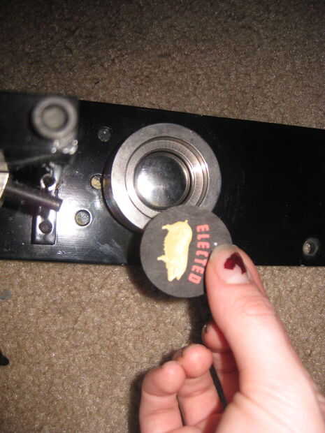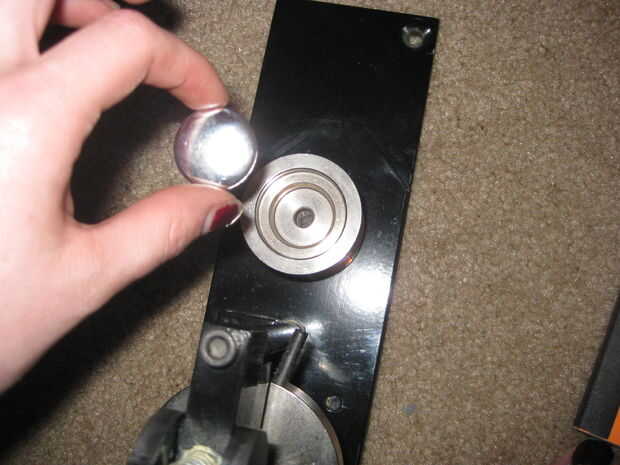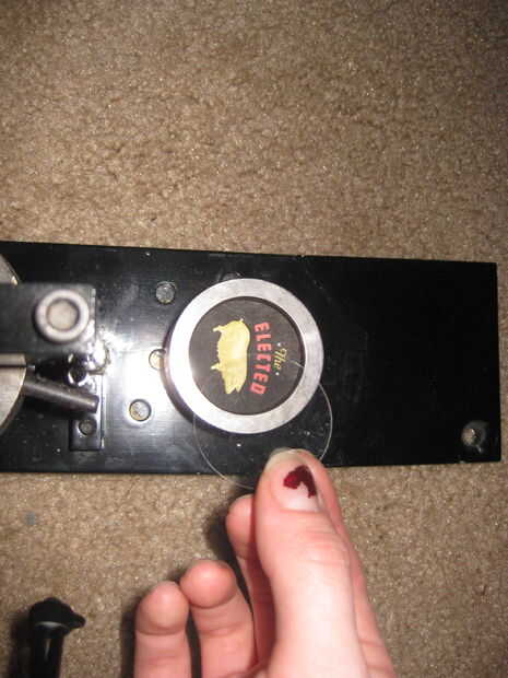 3. Coloque el respaldo del botón en el soporte circular de metal, coloque su recorte de imagen en la parte superior del respaldo y luego coloque el plástico circular encima de ambos.