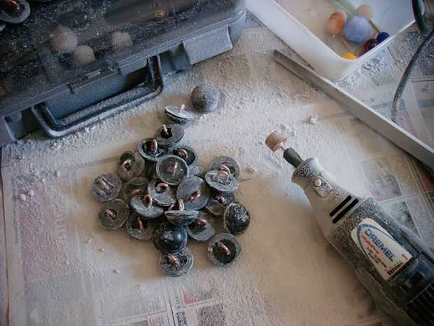 Cuando se establece y se retiró del molde, todos tenían bordes ásperos y a veces punzante para que esto tuvo que ser corregido. Una herramienta dremel (junto con una máscara de la cara) se utilizó para hacer la limpieza para arriba.