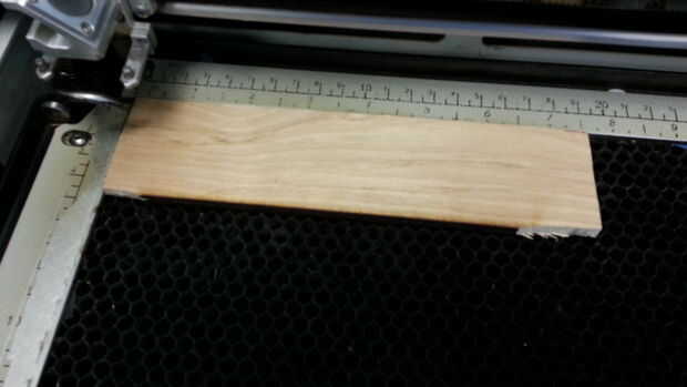 Estoy usando un laser de Epilog 60 vatios TechShop Detroit. Antes de comenzar, debe centrar el láser. Una manera fácil de hacerlo es utilizar un pedazo de papel y eleve la cama del láser hasta que no se puede mover el papel más entre el accesorio de enfoque y la pieza de trabajo.