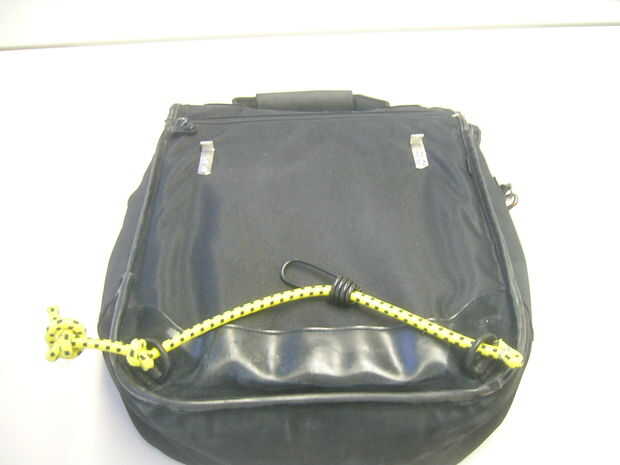 Luego montar el bolso en mi estante y comentar cuánto bungee era necesaria para asegurar la bolsa hacia abajo. La idea para el amortiguador auxiliar inferior es agujero de la bolsa hacia abajo - así que tendrás que montar algo que está por debajo del amortiguador auxiliar, no por encima (lo contrario te ser tirando el bolso de la cremallera en lugar de manteniendo apretado).