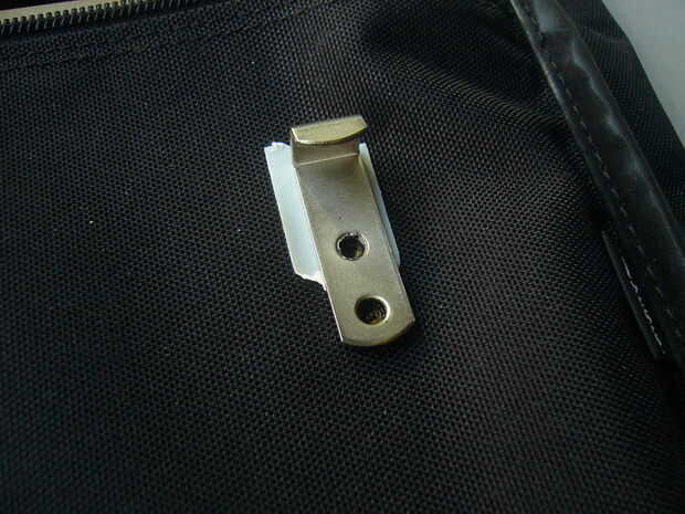 Una vez que hayas encontrado donde quieras colocar ganchos en su bolso, deslice la placa posterior en la bolsa donde gustaría alojarte. Luego marque y corte a través de su bolsa de material.