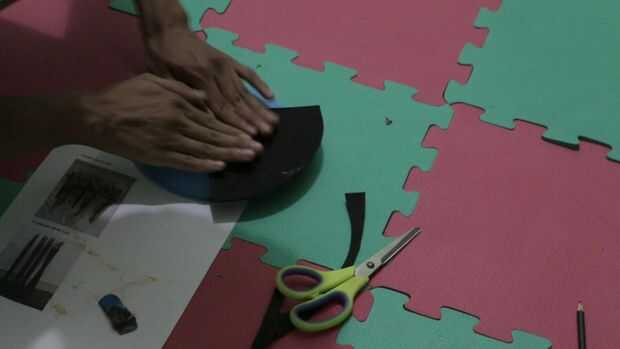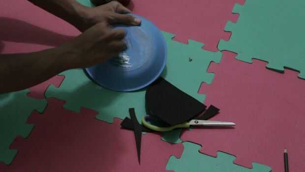 Cómo hacer bricolaje cojines eCymbal de placa de plástico para baterías electrónicas (3 / 6 paso)