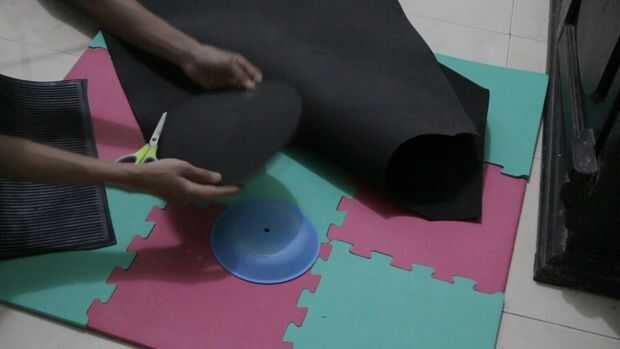 Utilizar cualquier tipo de goma como mas, almohadilla de alimentación de coche, cojín de ratón, barnizado, etc. el corte a capas de la placa. Use pegamento para pegar la malla a la placa.