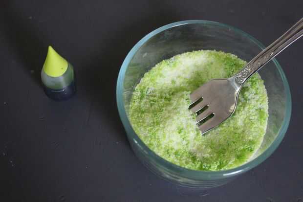 Añadir unos 4-5 gotas de colorante a su nivel de azúcar. No desea agregar demasiado o es muy pegajosa