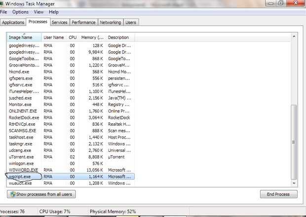 Administrador de tareas sólo oprima Ctrl + Shift + Esc en su teclado para abrir ventanas Para terminar este disco, es necesario poner fin a un proceso llamado "wscript.exe". Para mejores resultados, mantenga todos los LED "Off" antes de iniciar la secuencia de comandos.