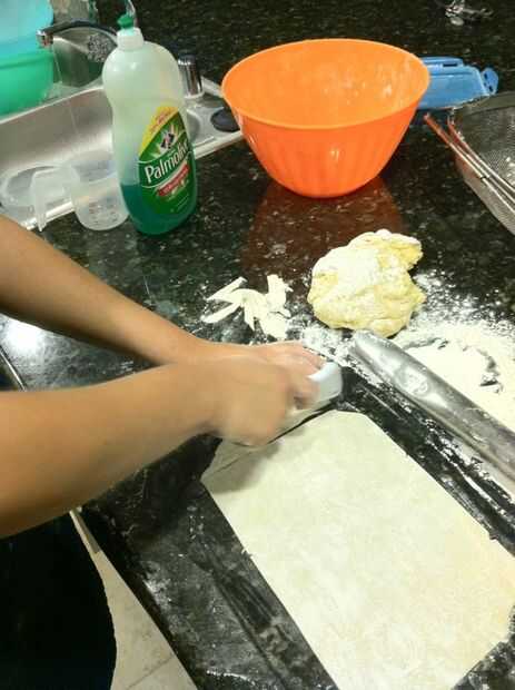 Comenzar a rodar la masa en hojas finas algo rectangulares (como delgado como sea posible, la más fina la masa, el más ligero los chips será)
