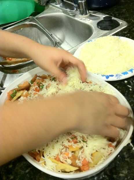 Precalentar el horno a 375 y coloque dentro hasta que el queso esté bien derretido e incluso un poco dorado en la parte superior.