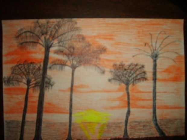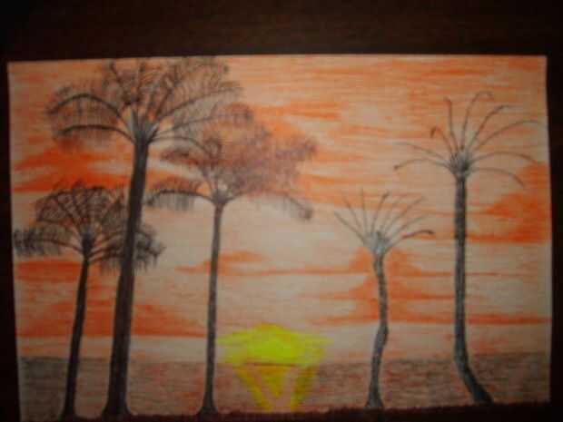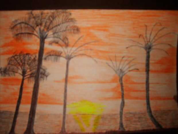 otra vez que hice estos rápidamente. Recuerde que existen líneas estrecha en la naturaleza. así que pasar menos tiempo en las líneas curvas, cada una diferente y le da un aspecto más natural. Comenzar la línea desde el centro y arrastre hacia fuera rápidamente para obtener una línea de adelgazamiento. toda rama debe ser rápida con curvas y llenar en ambos lados de cada uno aunque se solapen. Porque lo que hacen en la naturaleza así!... Hey mira una puesta de sol en la playa!