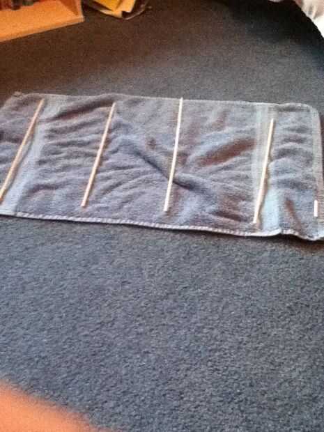 Extienda su toalla en el suelo o sobre una mesa y luego diseñar sus cocina palos aparte de uno a otro