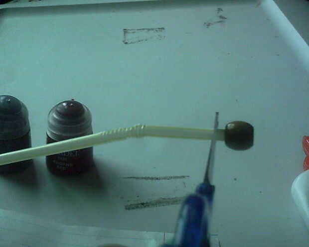 y cortar la paja para ser del tamaño de lo peg poco arriba de la cabeza de spidey.