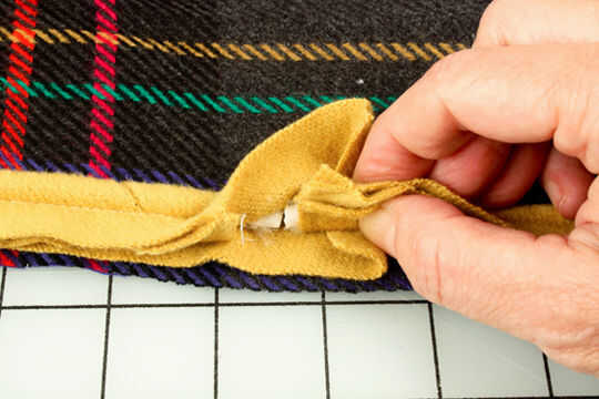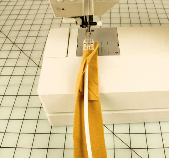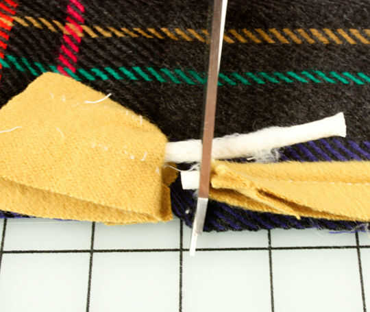 durante las clases de tapicería, una petición que escucho una y otra vez es para mostrar a los estudiantes cómo hacer y conecte el cable de welt (tubería) a una costura de la almohada o en las costuras del colchón. Un poco añadido bonus es que utilicé una chaqueta de lana de buena voluntad como la tela de este cordón chartreuse. Cuando tiene un color muy específico en mente, a menudo es más fácil encontrar faldas de lana o chaquetas en tonos inusuales en lugar de tela sobre el perno.