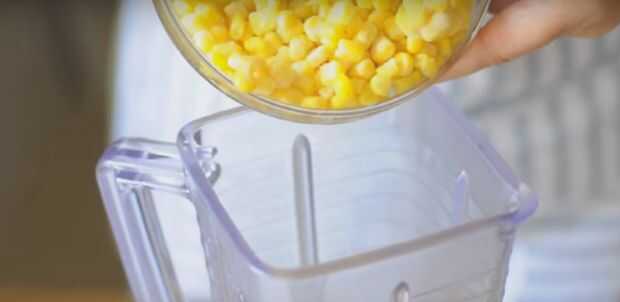 Combinamos en una licuadora los ingredientes de elección: maíz, leche y cucharadas de azúcar, sal y harina de maíz.