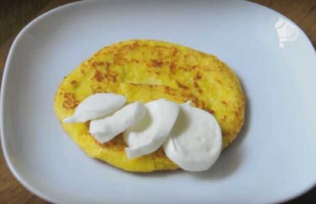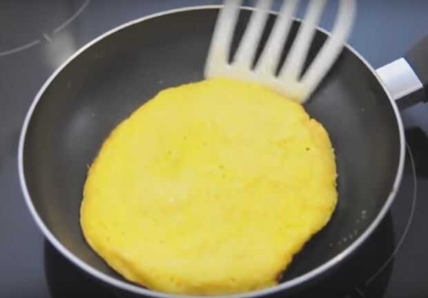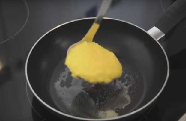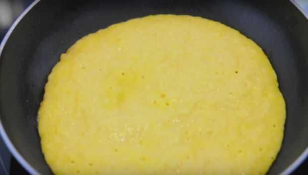 en un sartén caliente se extenderá con mantequilla. Agregar la mezcla en la cacerola, distribuyendo uniformemente. Cuando la mezcla se forma agujero es tiempo de voltear. Después de cocinar en ambos lados y estará listo.