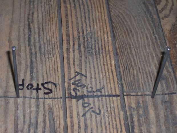 En perforación, arranque y parada de la línea colocar 2 clavos grandes. En línea 1/2 el lugar 1