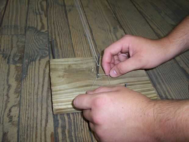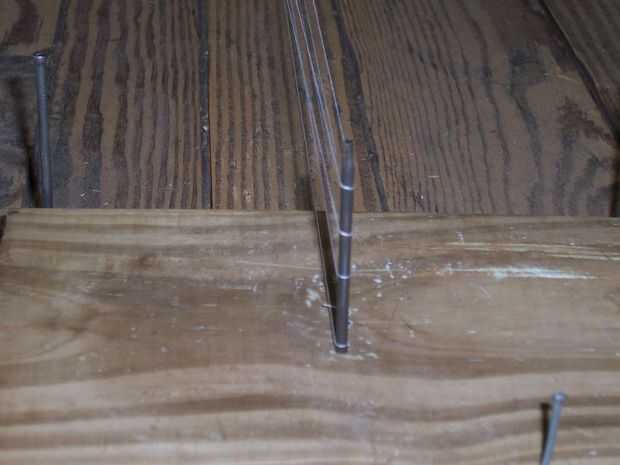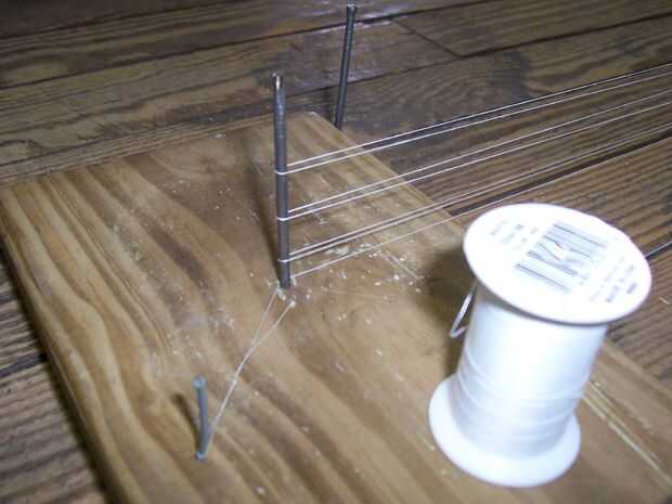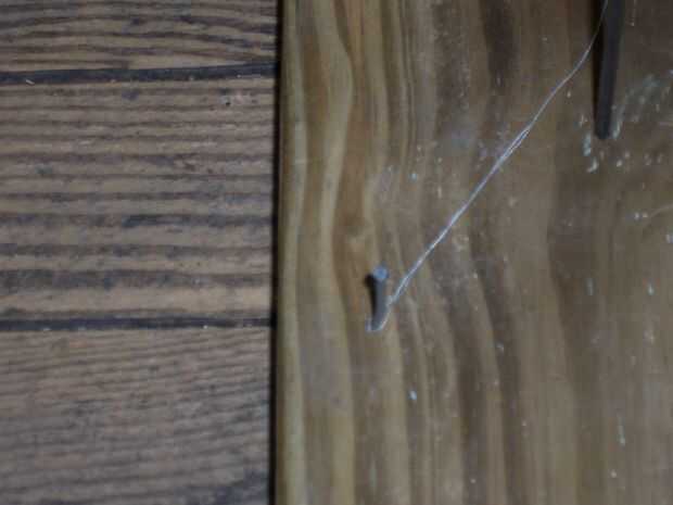 Ahora atar el extremo de la cuerda al clavo pequeño en esquina.