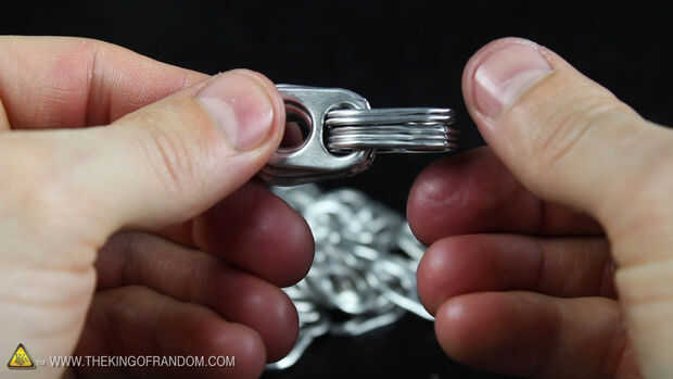 Ahora todo lo que tienes que hacer es empujar el gancho a través del extremo más grueso de nuestro enlace de la cadena y doblar la parte de atrás de metal para cerrar la brecha. Es tan fácil como eso.
