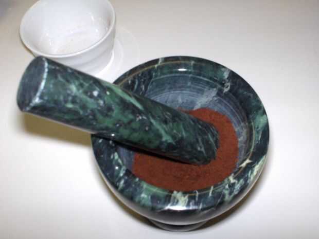 Café instantáneo la no se disolverá en el chocolate así que necesita estar tan bien como podemos hacerlo. Para ello he utilizado mi mortero y Maja. Si utilizas tu mortero y Maja para productos químicos del fuego como me aseguro de limpiar hacia fuera antes de la mano.