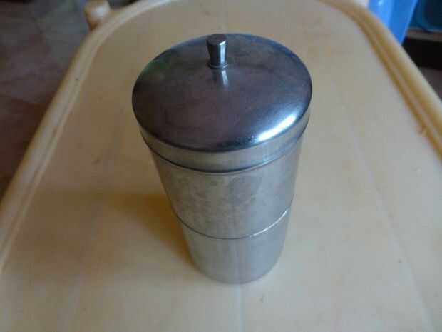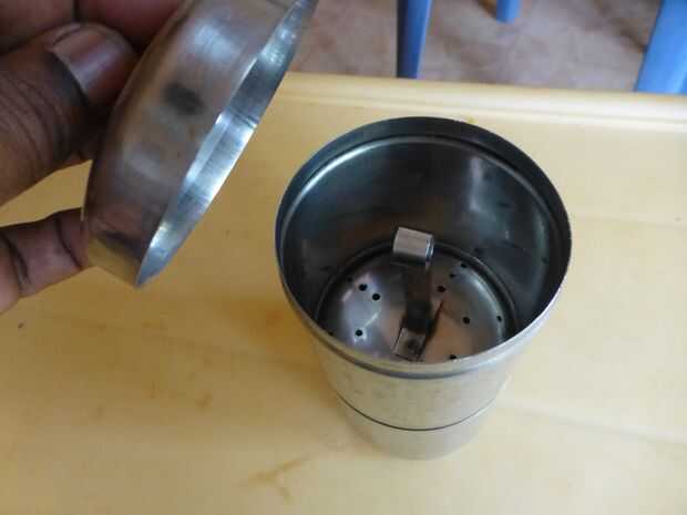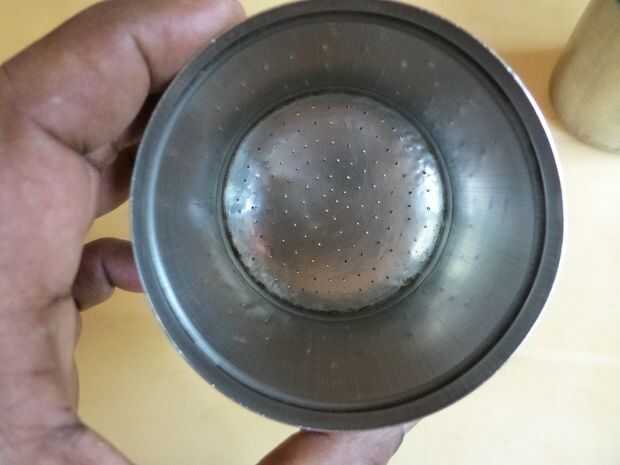 • La Copa cilíndrica superior con perforaciones muy finas en la parte inferior. Esta Copa está cargada con el polvo de café hirviendo agua para elaborar cerveza.