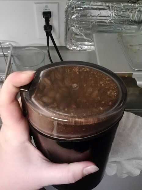 Mientras que está moliendo sus granos de café, una de sus jarras de dos café llene con agua.