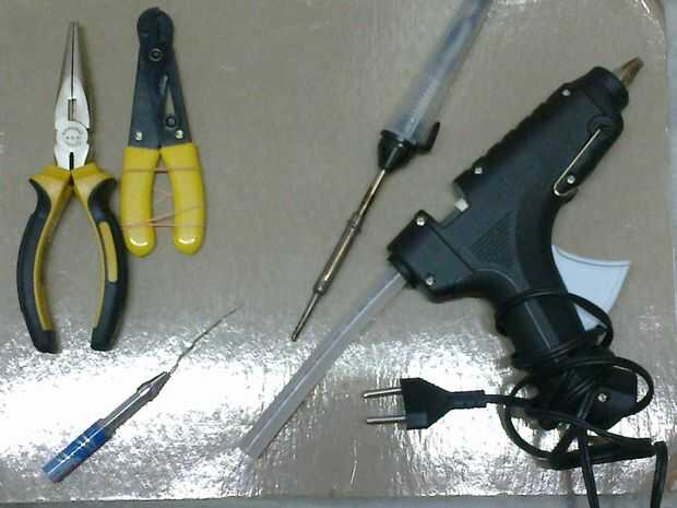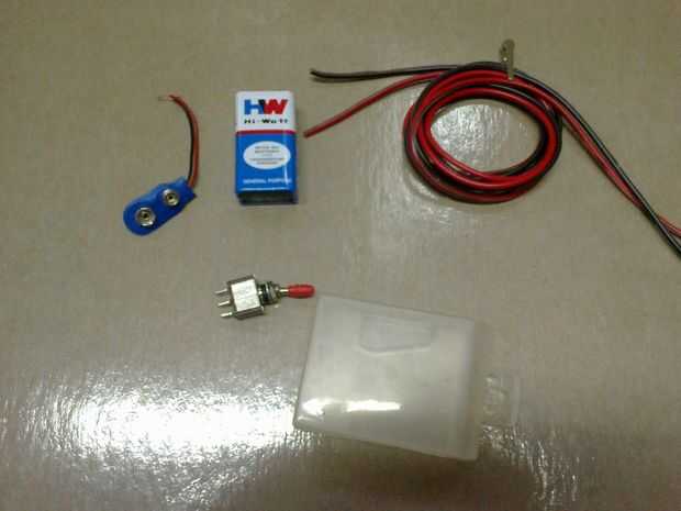 PARTS:- 1) conector de 9 v y pilas 2) caja de plástico (yo usé una caja de clip de papel) interruptor de 3) HERRAMIENTAS:- alambre y varilla de soldadura pistola de pegamento caliente cortador o cuchillo Piler desaislador alambres