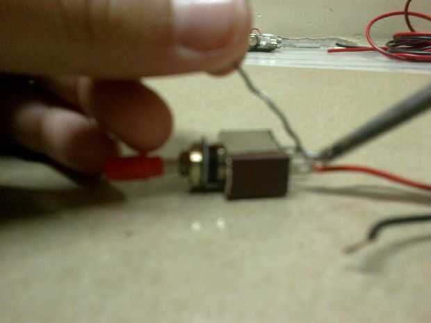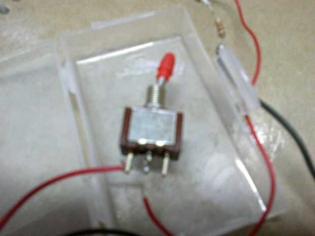 Ahora es el momento para el interruptor de la batería de 9v y cables de soldadura. Solde el cable positivo con el interruptor. Ahora haga dos agujeros en el mismo lado del interruptor en el que los cables pueden ir fácilmente a través de.