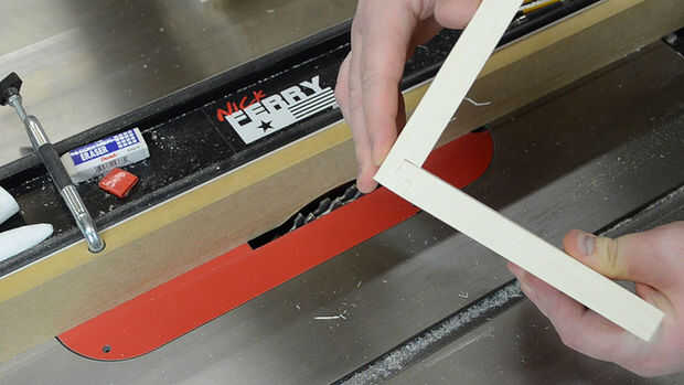 Una valla de sacrificio está sujeta en su lugar y la valla se mueve sobre al descubierto 1/2 del espesor de su material. Hacer un corte en una pieza de ensayo y verifique para encaja con los lados del cuerpo. Si es demasiado flojo, baje la hoja, si está demasiado apretado o no encajar en todo, levante la hoja siempre tan levemente. Haga otra prueba. Una vez que lo tienes perfecto, hacer cortes en el rostro mismo de ambos extremos de la pieza frontal. Explico más sobre diagnosticar y resolver problemas de mobiliario en el artículo.