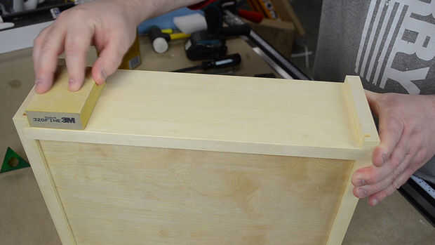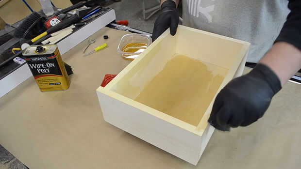 ¿Para terminar o no terminar? Esa es la cuestión. Normalmente dresser o de noche no aplicar un acabado a los cajones. En este caso hacía cajones para TV gabinete y albergará videojuegos controladores así. Una o dos capas de un poliuretano wipe on hará un poco más fácil limpiar cualquier suciedad a la izquierda de un niño que acaba de terminar encima de una rebanada de pizza o un chupetín pegajoso. Derribar cualquier protuberancias al final es fácil de hacer con un cojín de acabado. Si desea escuchar un barbudo obeso hable para 11 minutos sobre aplicar acabado a cajones, haga clic aquí.