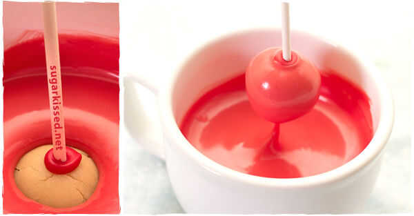 Sumergir cada pop de la torta hacia abajo en la capa hasta que la bola de la torta es totalmente cubierta y sellada. Si usted necesita a ángulo de lo pop cake, incline suavemente en una dirección y luego otro. No remover la capa con el pop cake o puede caer en el palo. Eliminar lo pop cake de la capa fundida tirando hacia arriba. Luego, gire la torta pop en un ángulo y golpee suavemente apagado cualquier exceso capa.