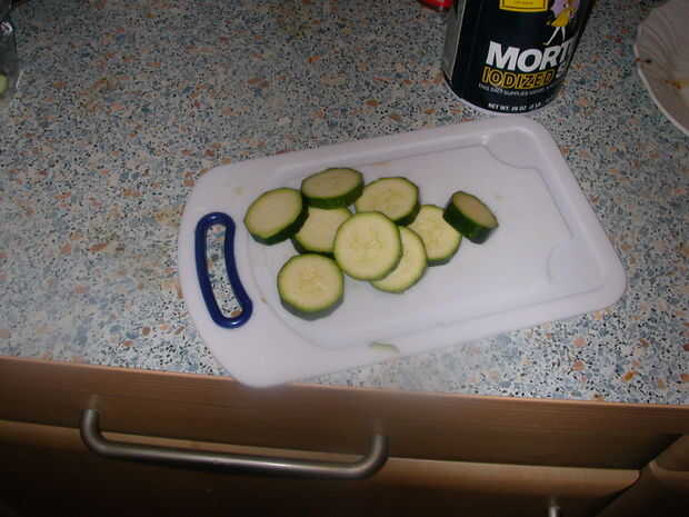 Calabacín lavado y corte de 1/4 de pulgada rodajas.