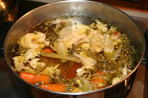 desde que empezamos a criar pollos de carne hace un par de años he sido asar pollos enteros sobre una base regular. Al principio sólo estaba lanzando los huesos sobrantes, pero rápidamente me di cuenta que necesitaba aprender a hacer caldo de pollo.
