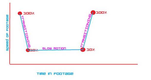 Algunas personas les gusta cambiar hacia adelante y hacia atrás entre la cámara lenta y en tiempo real para que algunos valores de fotogramas clave de ejemplo para pueda ser: