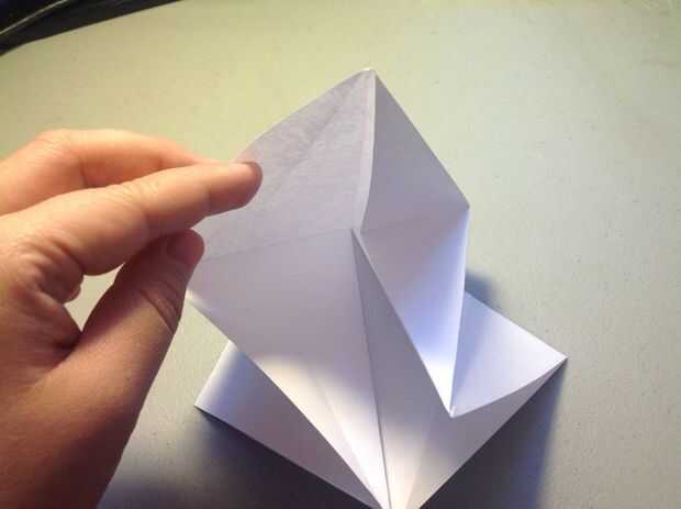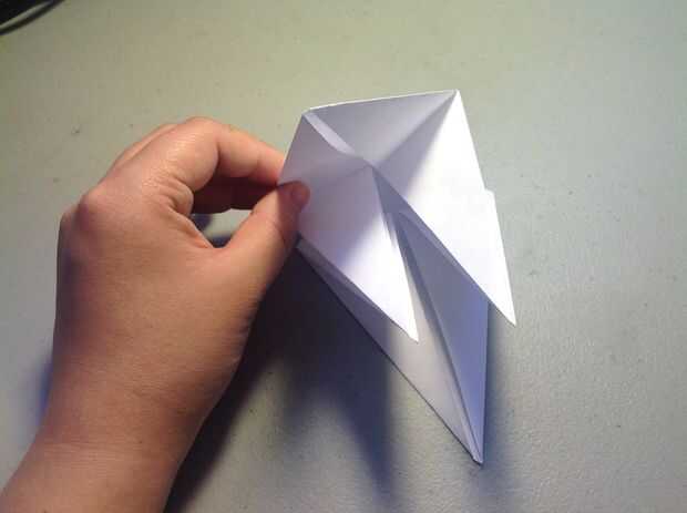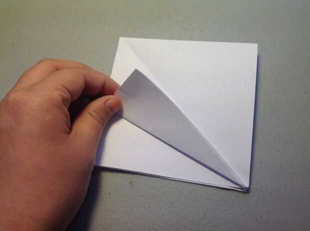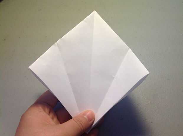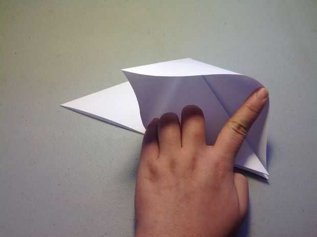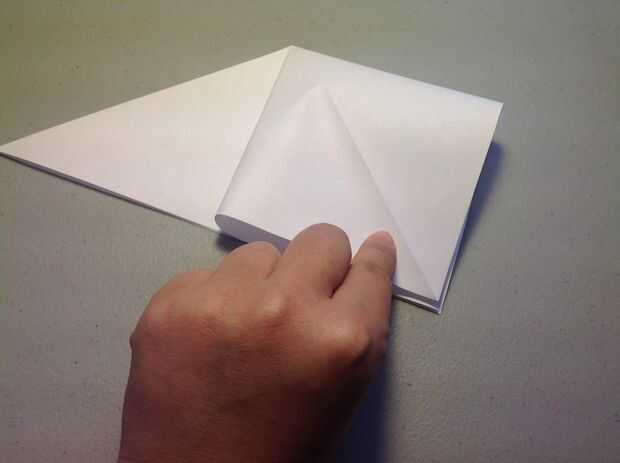 3 Abra la capa superior y squash, doblar a la izquierda a la esquina inferior. (Foto 3)