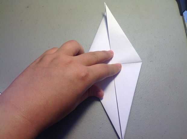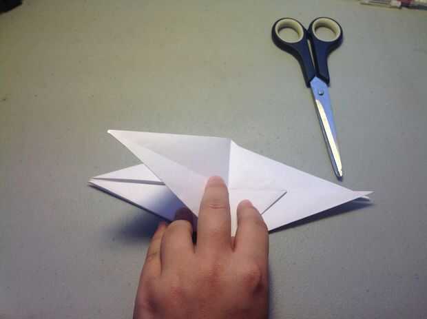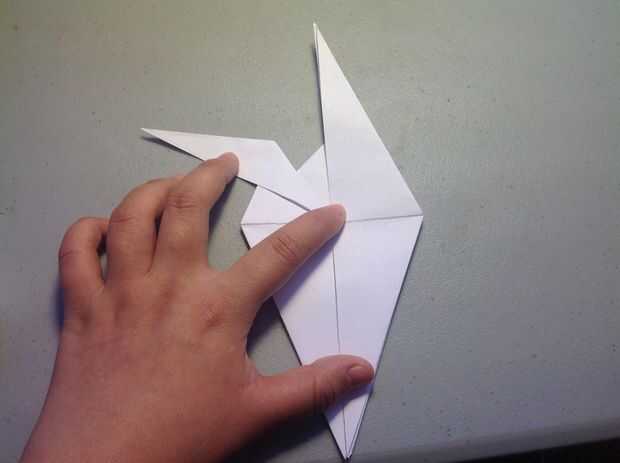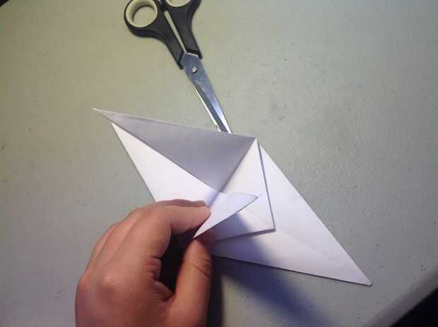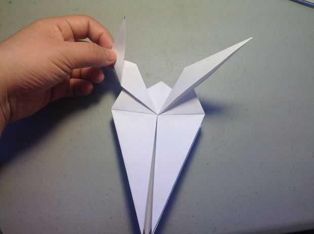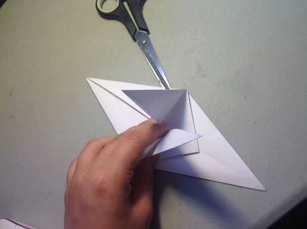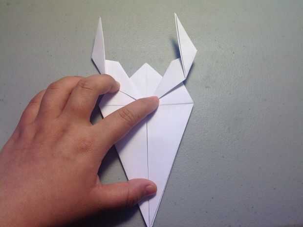 2. Baje una parte y doblar a la izquierda. Doblar la otra parte a la derecha. Este dos piezas son cuernos de oveja. (Foto 10 y 11)