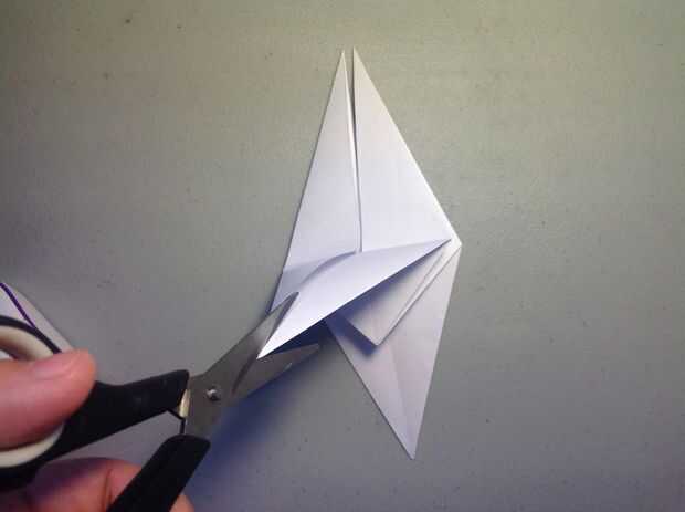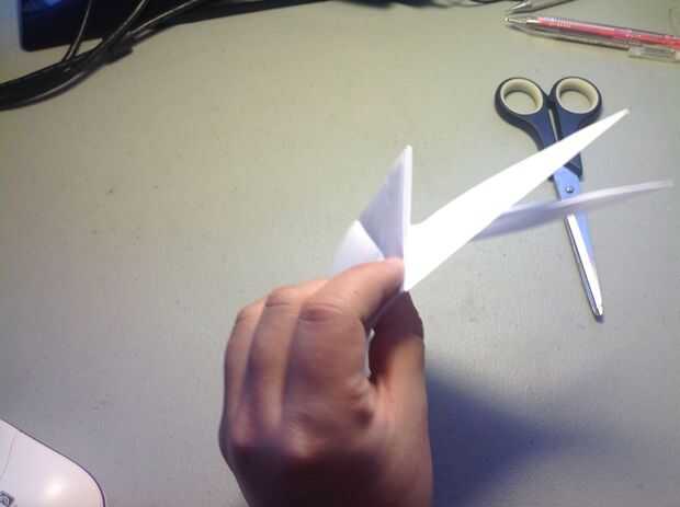 2. use sus tijeras para cortar a lo largo de la línea media hasta el final. La aleta se divide en dos partes. (Pic 2-4)