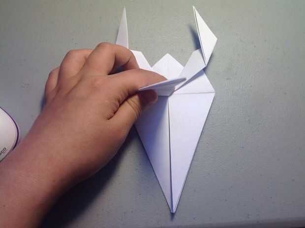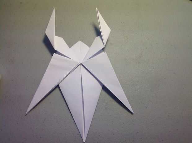 4. Gire el origami detrás, y usted conseguirá un contorno de la cara de oveja. (Foto 6)