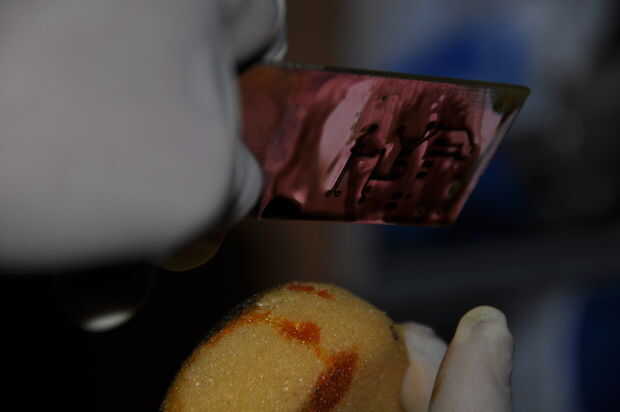 Empapar la esponja con agua. Luego exprime hacia fuera. Hacer que cuatro veces. Luego, poner la esponja en la bañera y vierta aproximadamente una cucharada de cloruro férrico en él. Comience a limpiar la tabla con la esponja. No frote, solo limpiar. El cobre debe empezar a desaparecer muy rápidamente. Seguir adelante hasta que han grabado una parte satisfactoria de su Junta Directiva. Luego enjuague el tablero bajo agua corriente hasta que desaparezca todo el cloruro férrico. Lave la esponja, asegurándose de utilizar mucha agua. Una pequeña cantidad de cloruro férrico diluido con tanta agua es aceptar para poner su drenaje. Deshacerse de los guantes, o lavarte apagado y reutilizarlos si quieres.