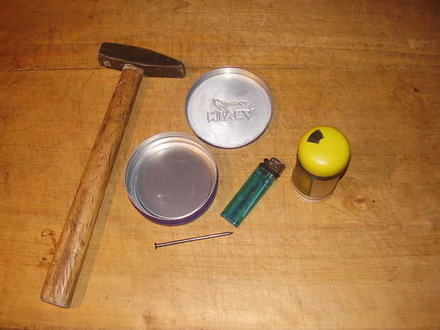 * Tapa para la taza de Metal - si es de crema facial, no hay problema, pero si es de la lata de comida, usted puede tomar algunas chapa una cubierta, tenga cuidado con los agujeros alrededor.