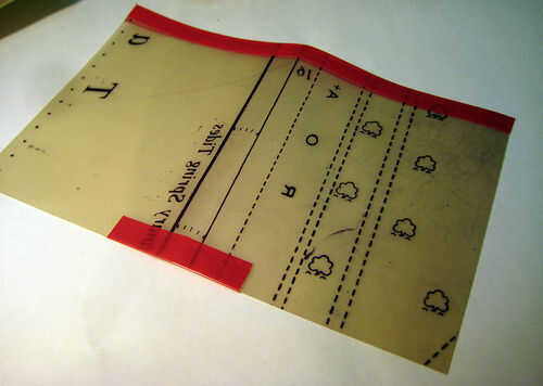Corte una longitud de cinta de unos 30mm de longitud y se aplican en el centro de la parte inferior como se muestra. Le permiten sobresalir, luego doblar sobre el borde del sello como antes. No necesita coser el borde.