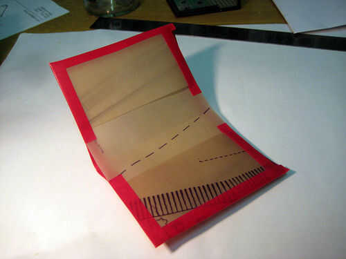 Coser a lo largo de los fondos de los bolsillos y los lados de la cartera, en 'L' en forma de caminos como se muestra. Otra vez triple costura para unos 10mm en cada extremo de la costura, para la fuerza. Si usted precisa y omiten coser el borde superior en el paso 4, todos estos bordes pueden ser cosidos en una puntada aseada a lo largo de una 'C' en forma de camino como se muestra.